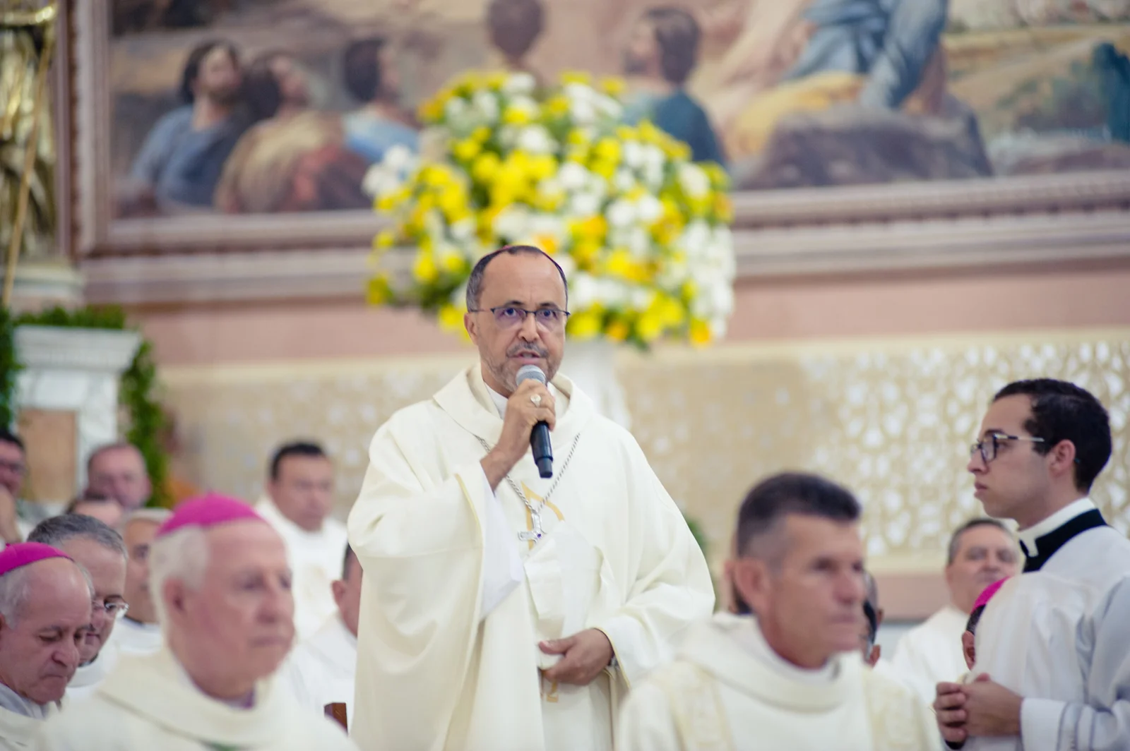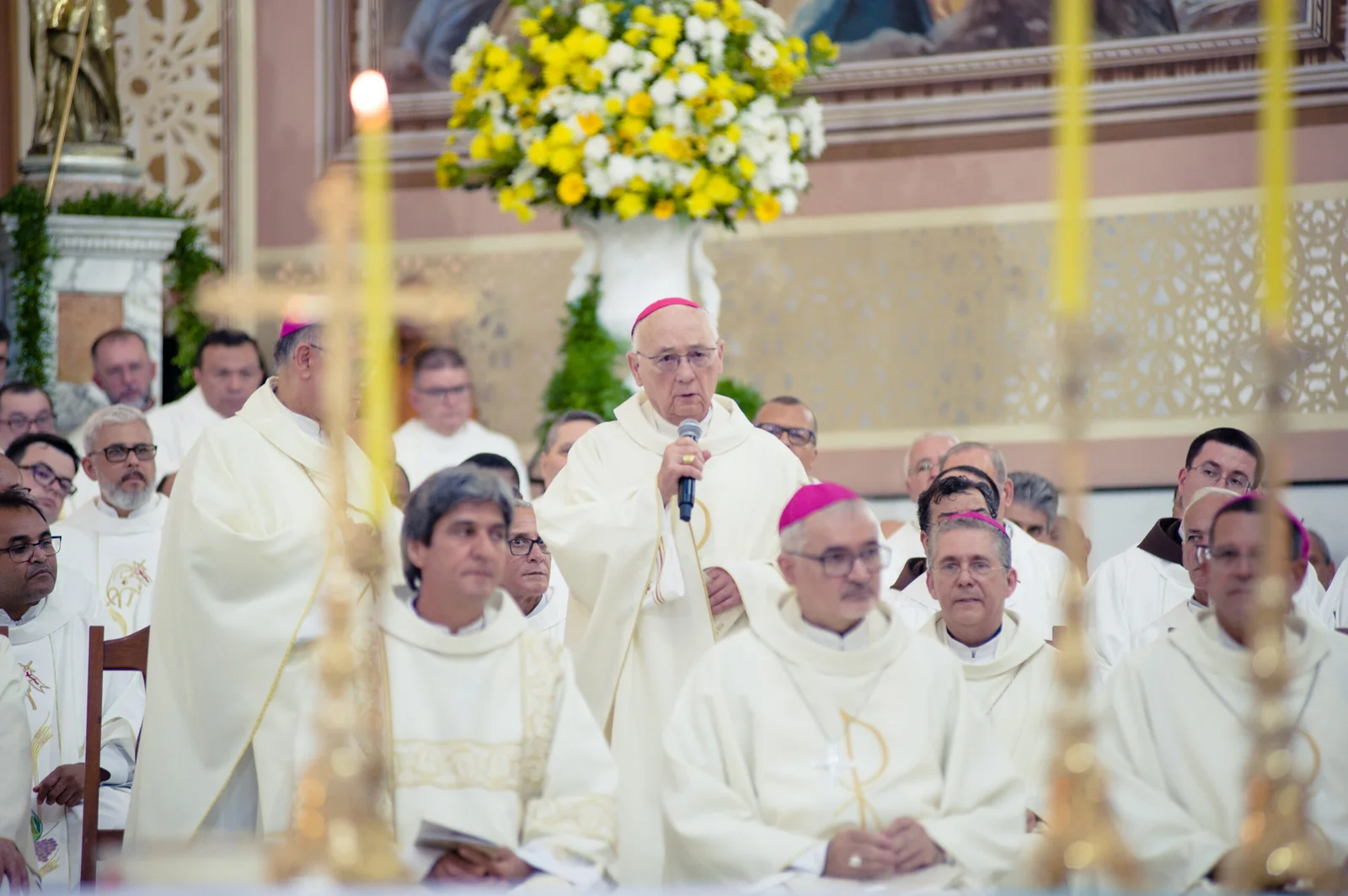 O padre José de Anchieta Moura Lima recordou a caminhada realizada pela arquidiocese nos últimos anos e manifestou esperança de continuidade do trabalho pastoral, ressaltando também a contribuição de Dom Gil Antônio Moreira durante os 17 anos em que esteve à frente da arquidiocese.