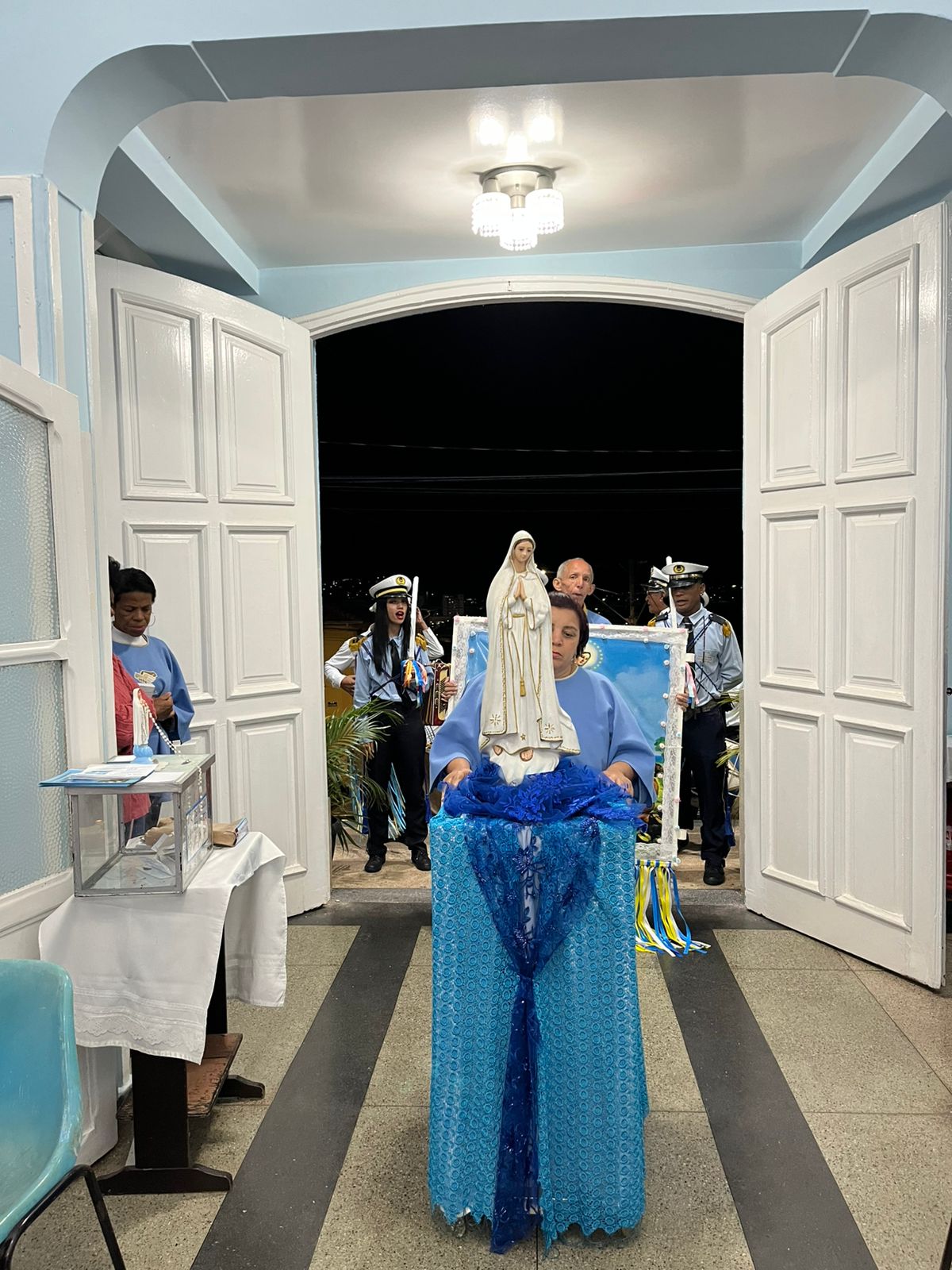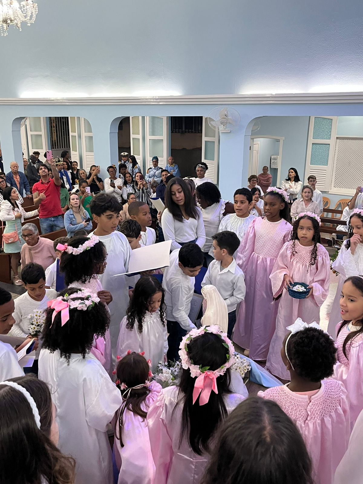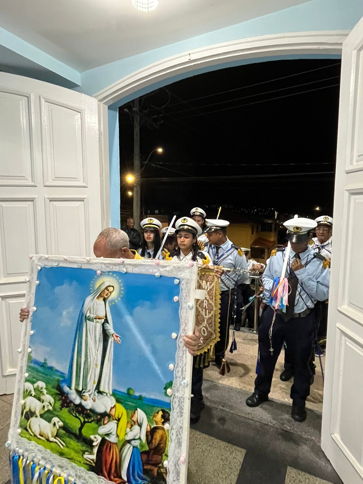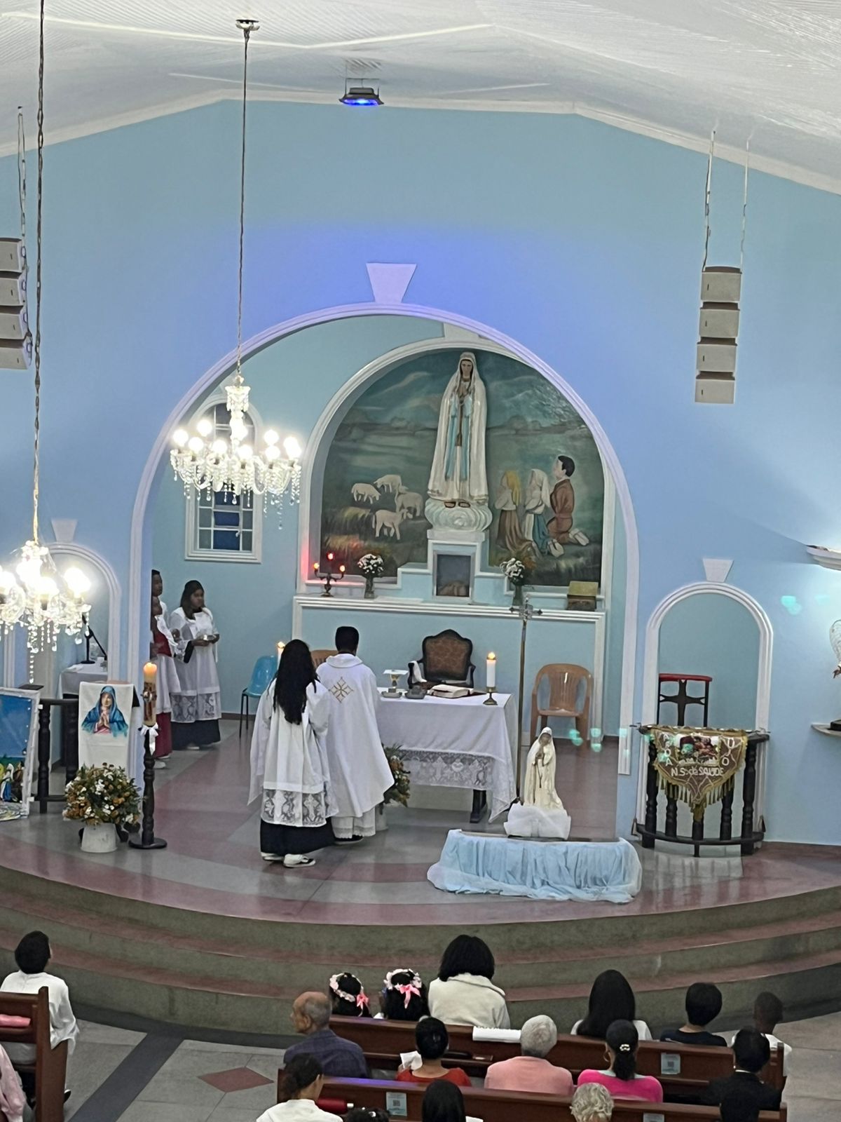 Durante a celebração, as crianças prestaram uma bela homenagem à Virgem Maria, enchendo de ternura e esperança o coração da comunidade. A presença da Guarda de Marujos Nossa Senhora da Saúde abrilhantou ainda mais o momento, reforçando a tradição e a religiosidade popular.