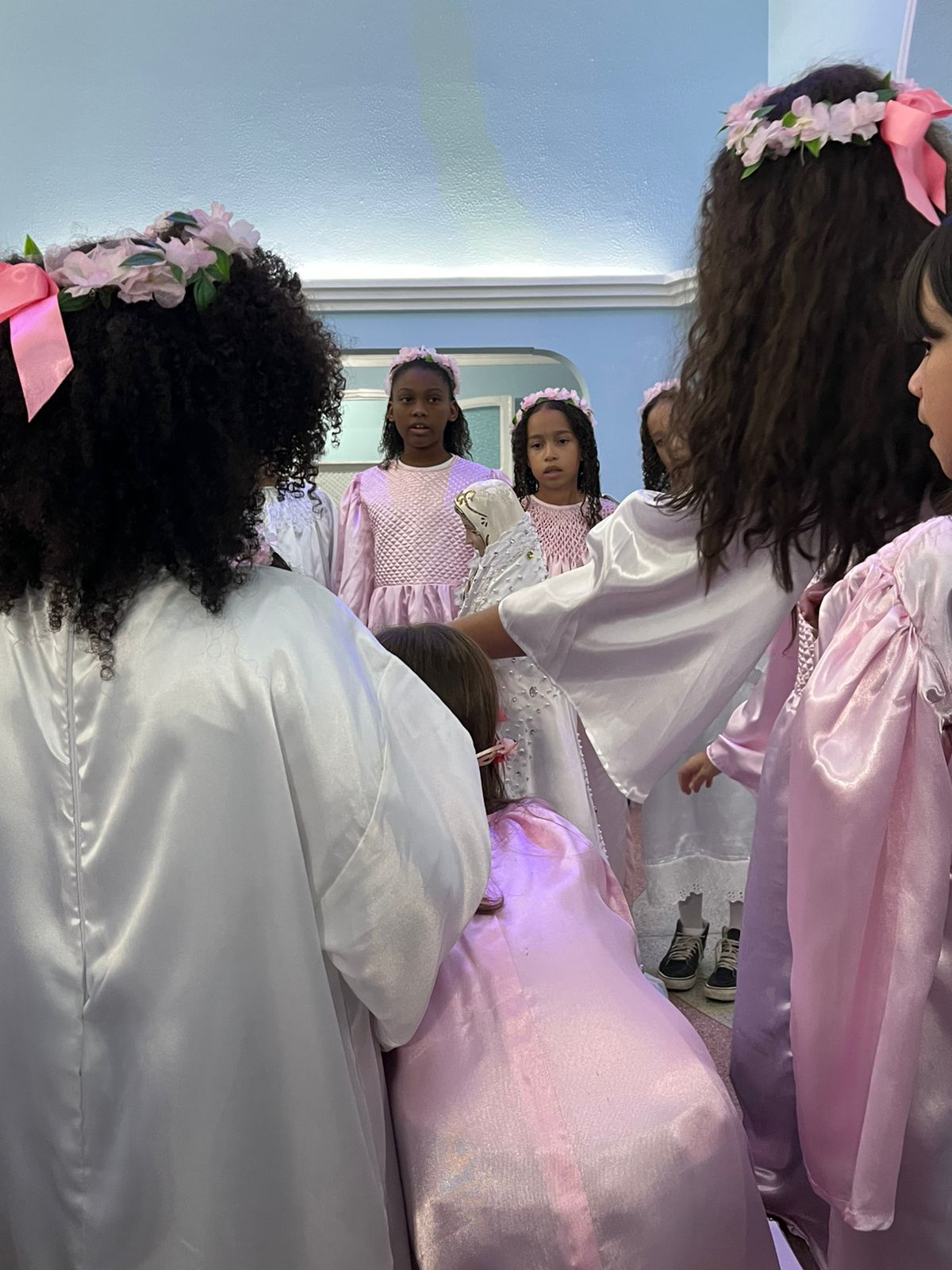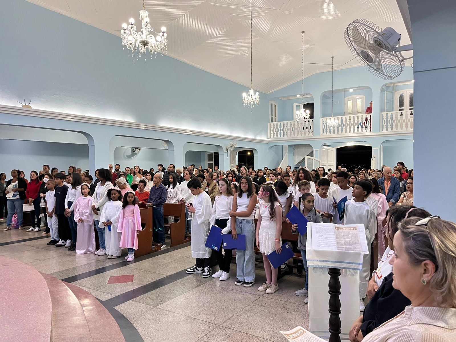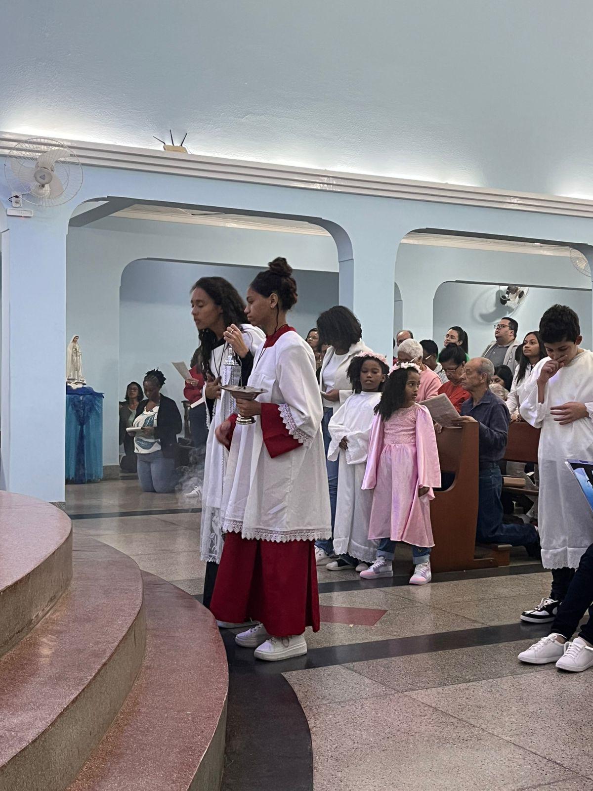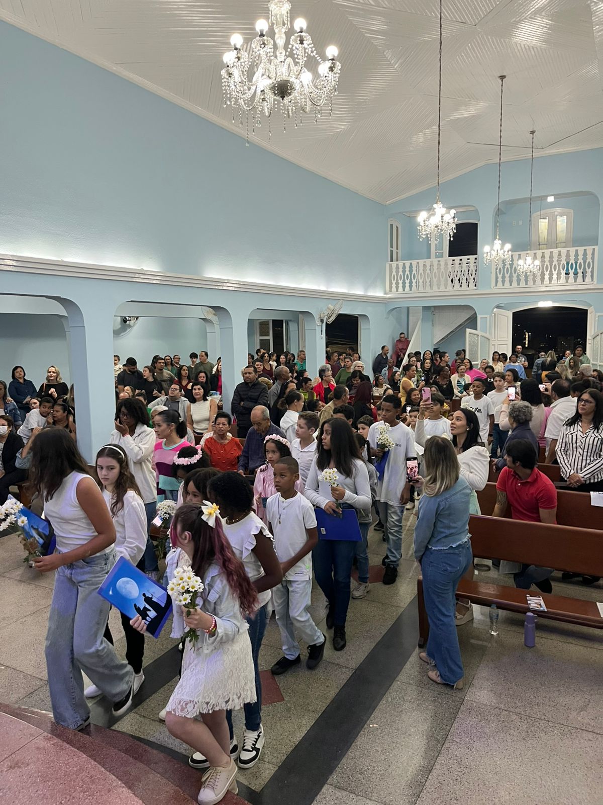 Durante a celebração, as crianças prestaram uma bela homenagem à Virgem Maria, enchendo de ternura e esperança o coração da comunidade. A presença da Guarda de Marujos Nossa Senhora da Saúde abrilhantou ainda mais o momento, reforçando a tradição e a religiosidade popular.