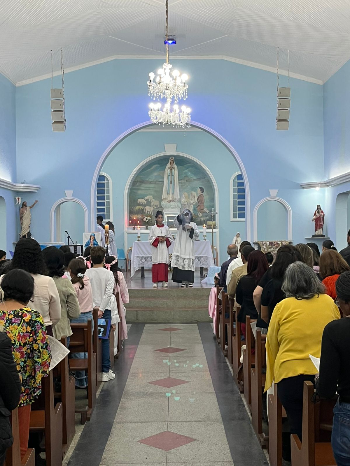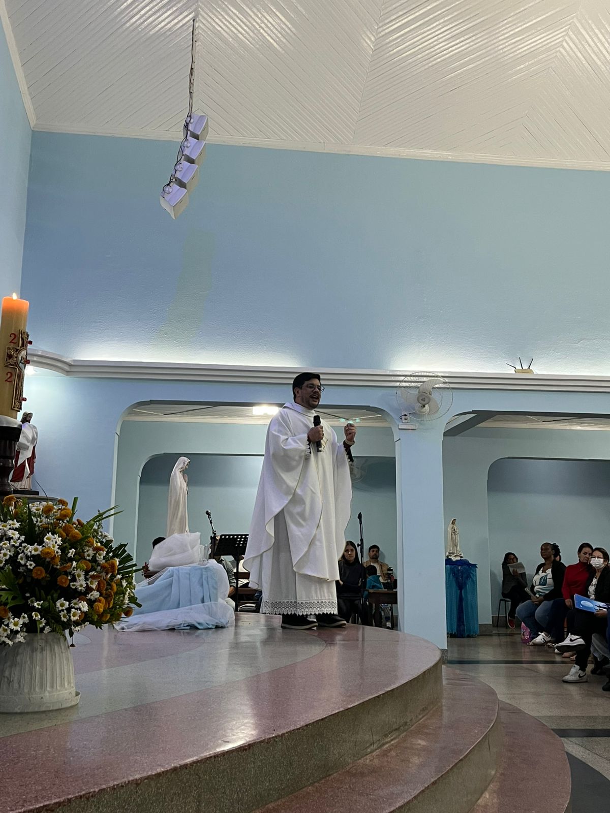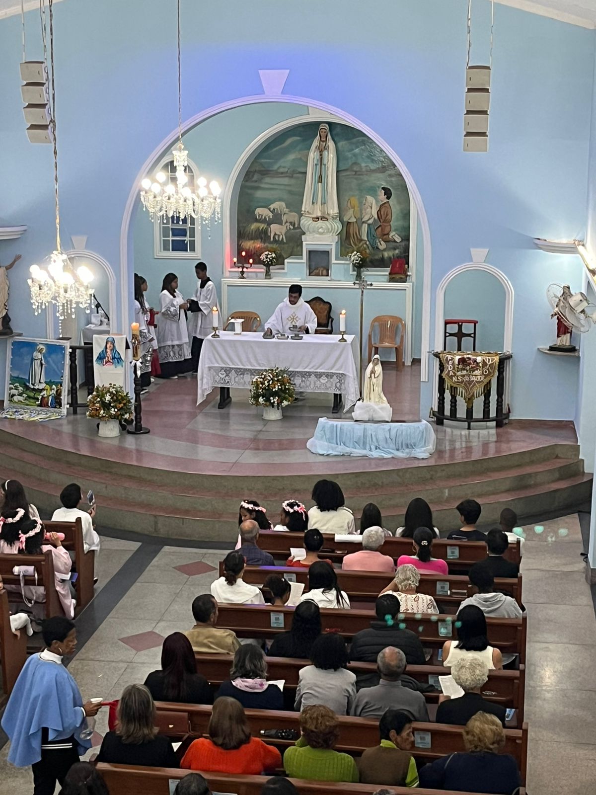Na tarde deste domingo, 4 de maio, teve início a novena preparatória para a festa de Nossa Senhora de Fátima, na comunidade da Vila Amélia, pertencente à Paróquia Nossa Senhora da Saúde. A Santa Missa foi presidida pelo vigário paroquial, Padre Anderson, e contou com a participação expressiva dos fiéis.