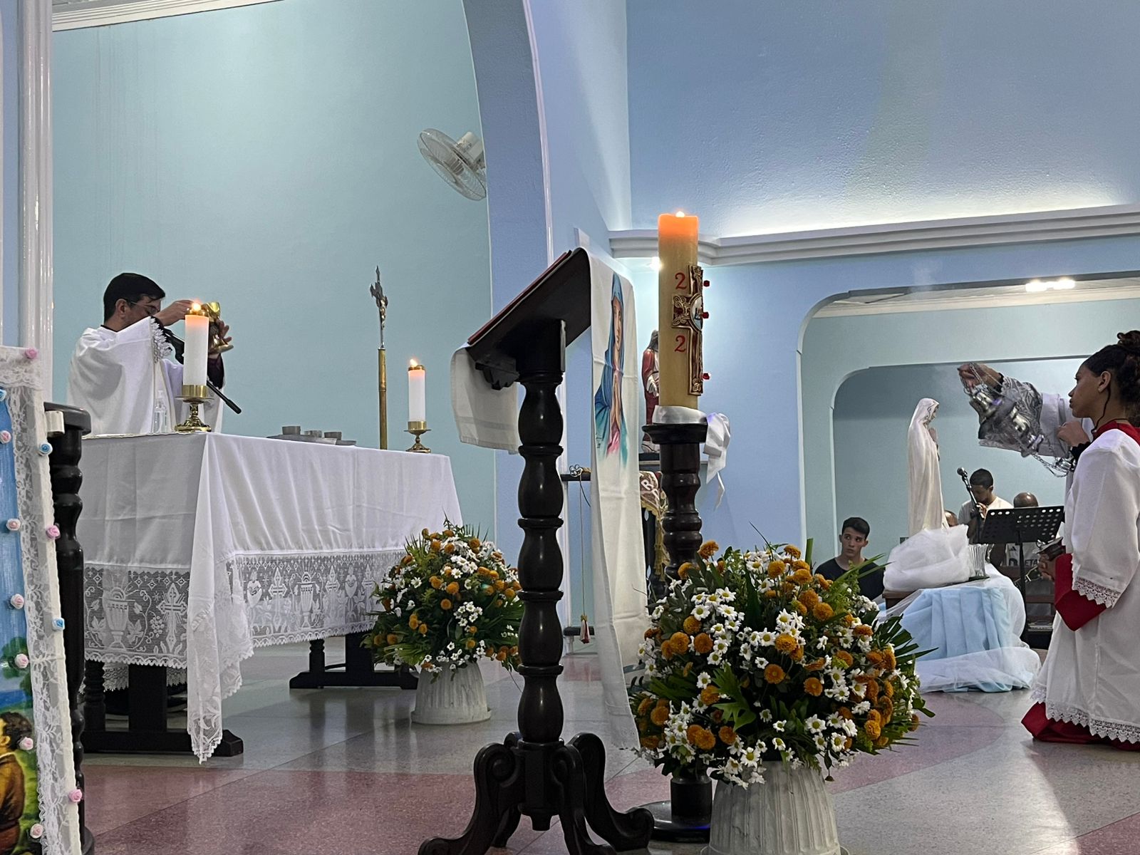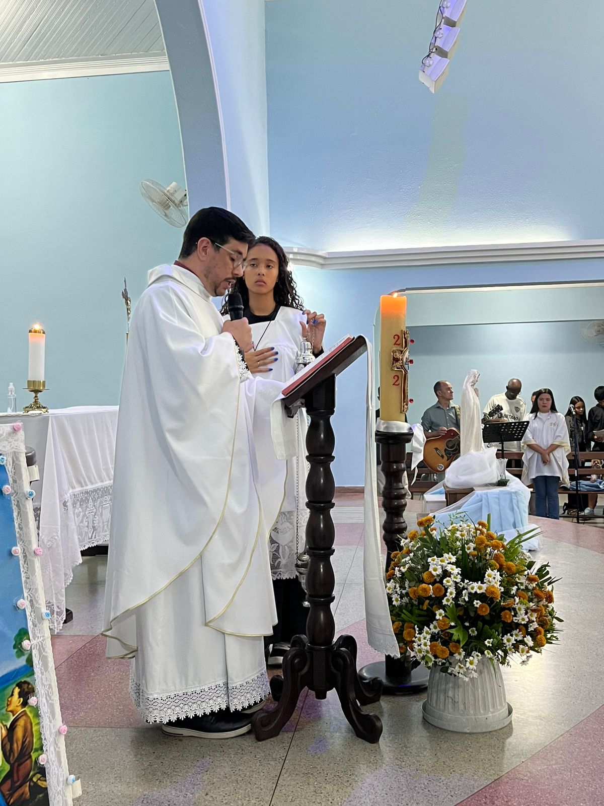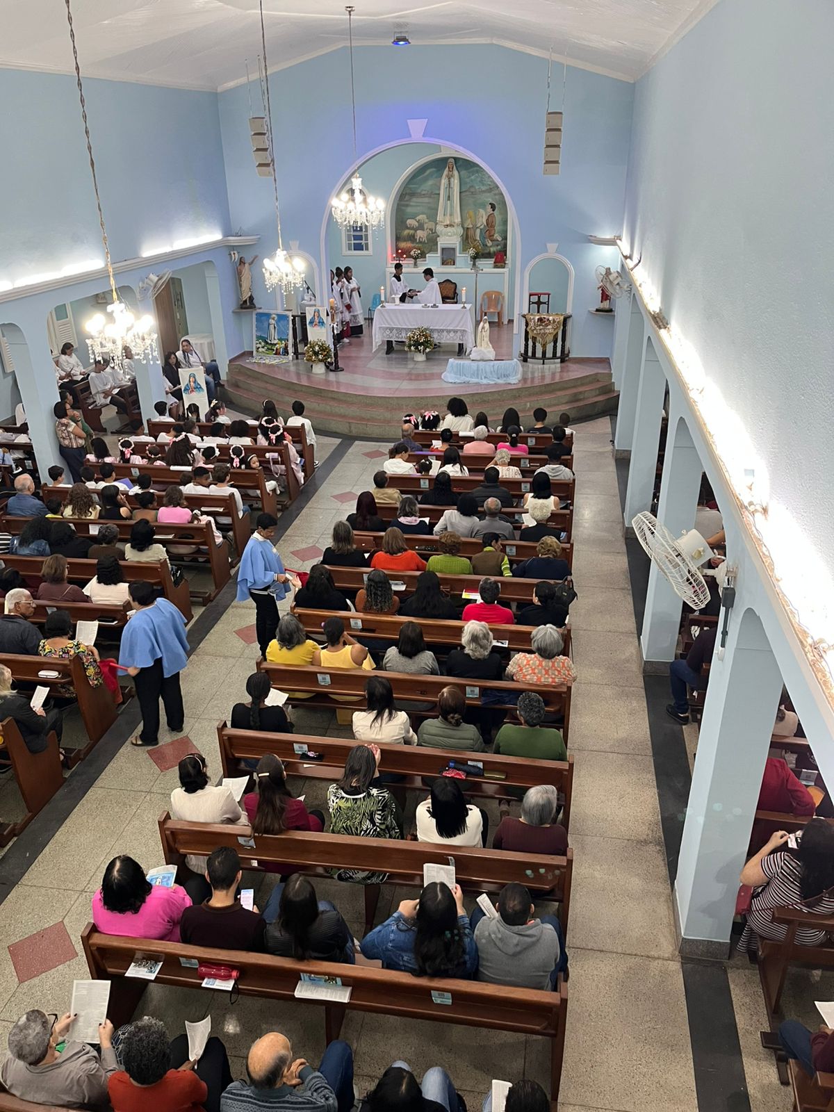 Na tarde deste domingo, 4 de maio, teve início a novena preparatória para a festa de Nossa Senhora de Fátima, na comunidade da Vila Amélia, pertencente à Paróquia Nossa Senhora da Saúde. A Santa Missa foi presidida pelo vigário paroquial, Padre Anderson, e contou com a participação expressiva dos fiéis.