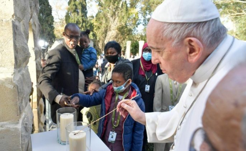 Antes de concluir o encontro o Papa acendeu junto com alguns dos migrantes uma vela diante da imagem de Nossa Senhora. Um gesto simples, mas com um grande significado. Na tradição cristã, disse Francisco, aquela pequena chama é símbolo da fé em Deus e é também símbolo da esperança, uma esperança que Maria, nossa Mãe, sustenta nos momentos mais difíceis. “É a esperança que hoje vi nos seus olhos, que deu sentido à sua viagem e os fará continuar para diante. Que Nossa Senhora os ajude a não perderem jamais esta esperança! A Ela confio cada um de vocês e as suas famílias, e terei vocês sempre presente na minha oração. E também vocês – peço – não se esqueçam de rezar por mim”.