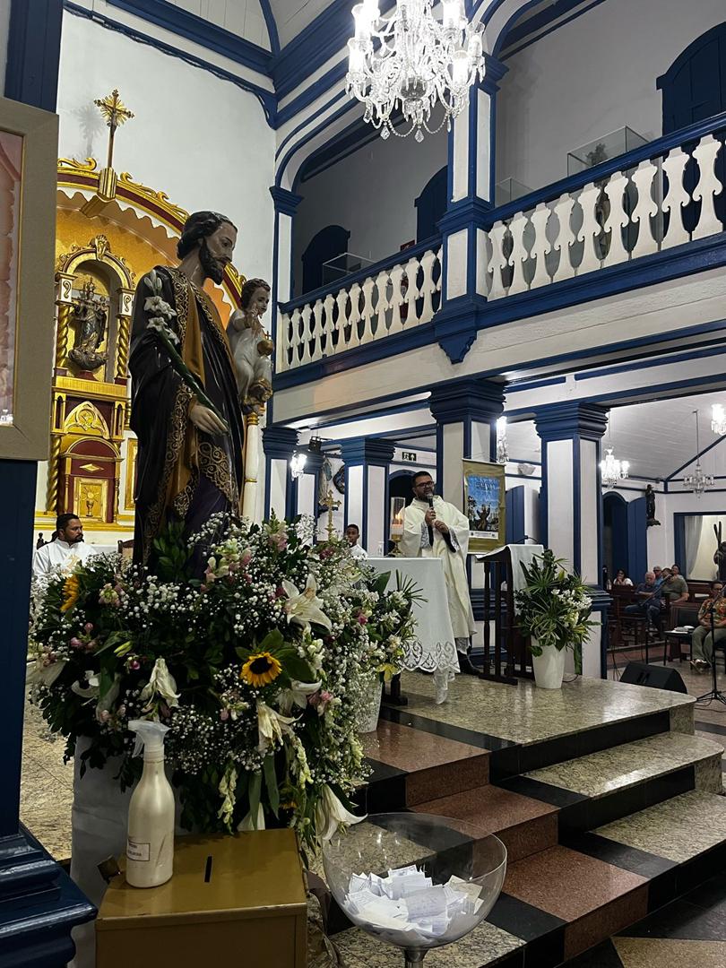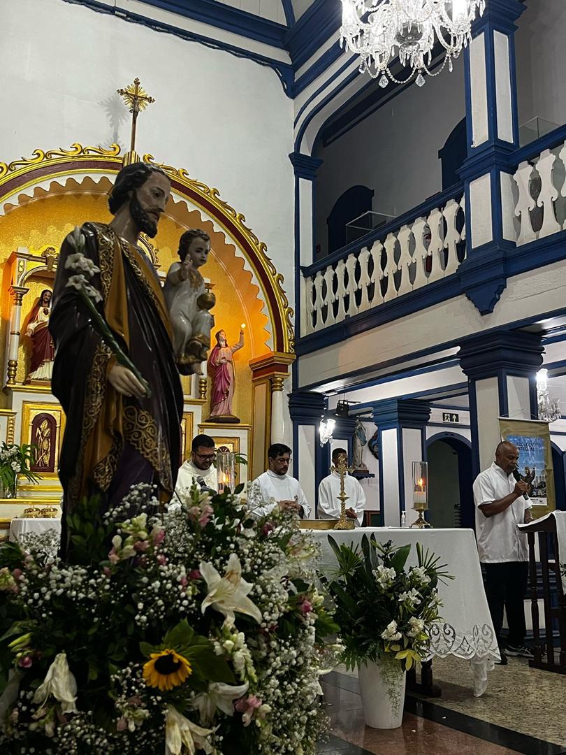 Na última terça-feira, a comunidade da Igreja da Saúde reuniu-se com grande alegria e devoção para celebrar a Solenidade de São José, patrono da Igreja e modelo de santidade. A Santa Missa foi presidida pelo pároco, Pe. Paulo Marcony, com a presença do Pe. Anderson e do Diácono Paulo, que colaboram na ação pastoral da paróquia.